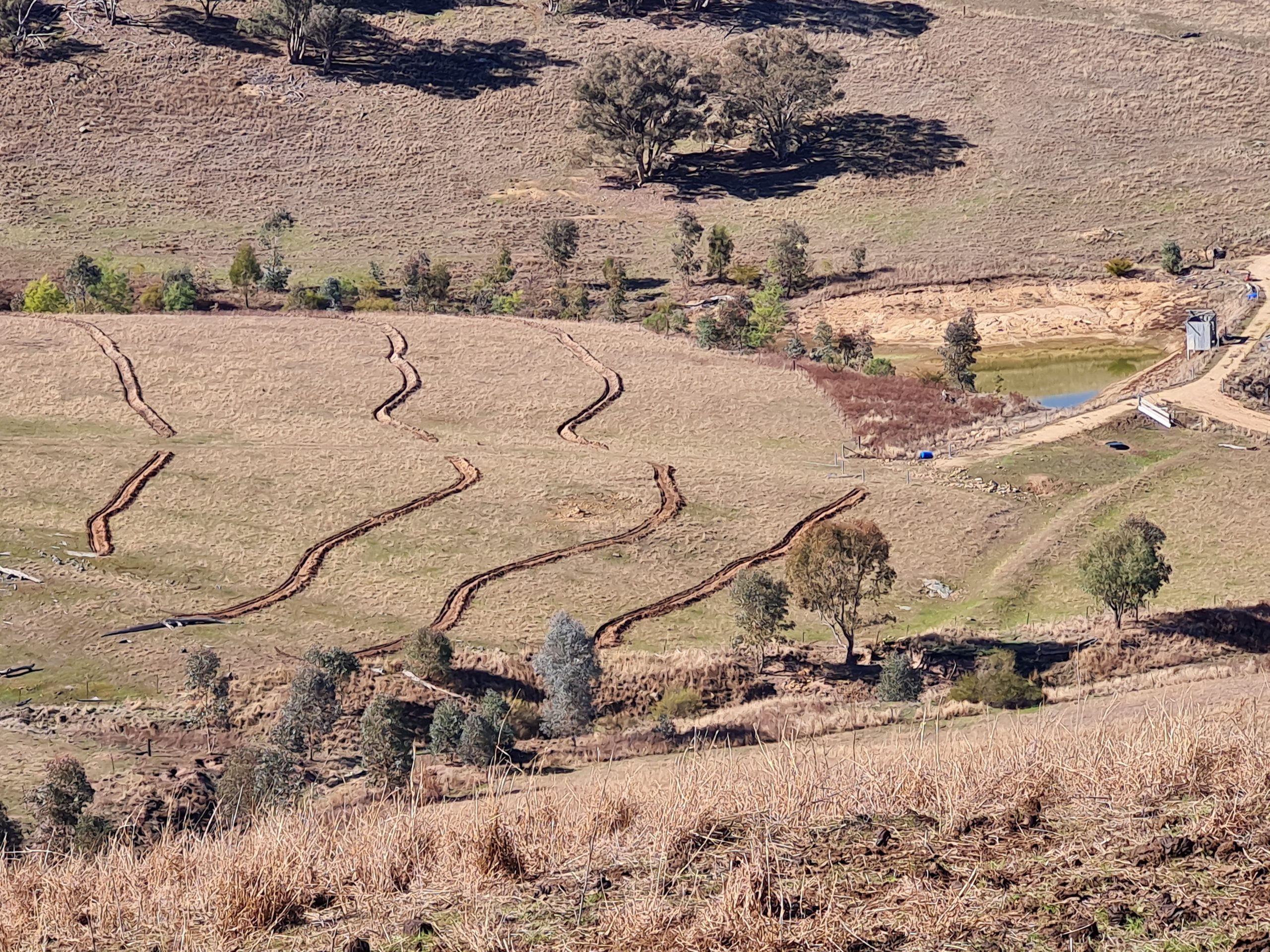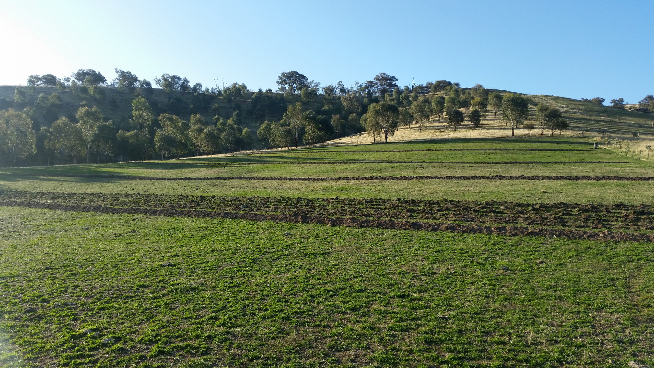 As an optional extra, I ripped one of the trial swale paddocks. You can see how I adapted P.A. Yeomans’ keyline technique. I worked down from the swale and up from the swale to direct any flow across the landscape.