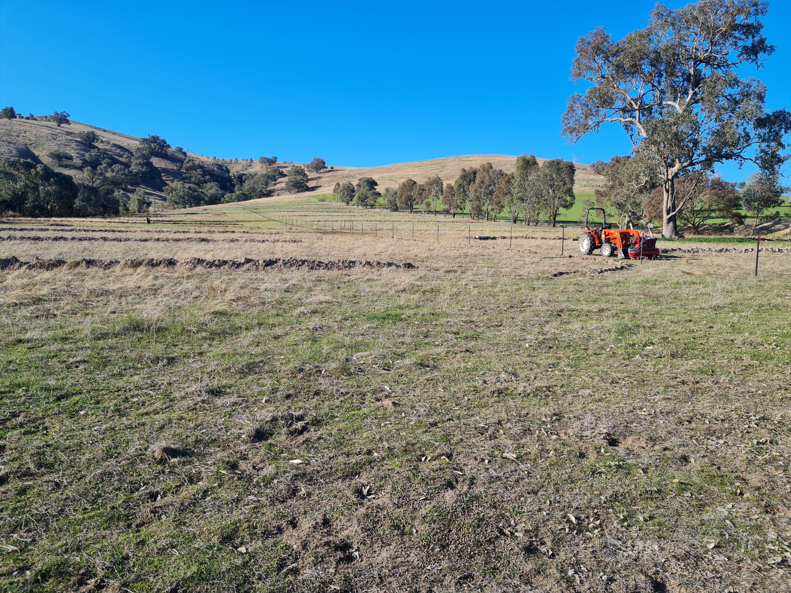 My system requires three tractor passes to form, deepen and smooth/tidy up the swales. I have a 35hp tractor and, although small, it does quite an adequate job with appropriate spaces for tree planting to construct glider laneways. It suits my soil type.