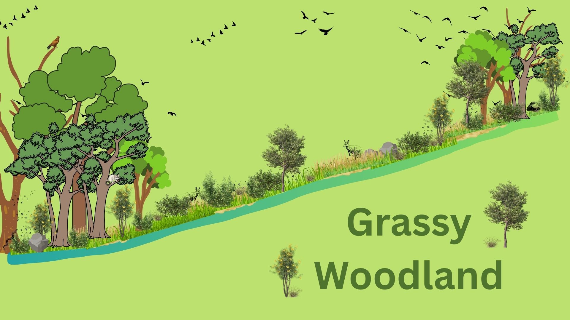 The answer to our question became obvious. To prepare for Squirrel Gliders we need to re-establish a modern equivalent to a grassy woodland – scattered trees across the landscape interspersed with grasses.