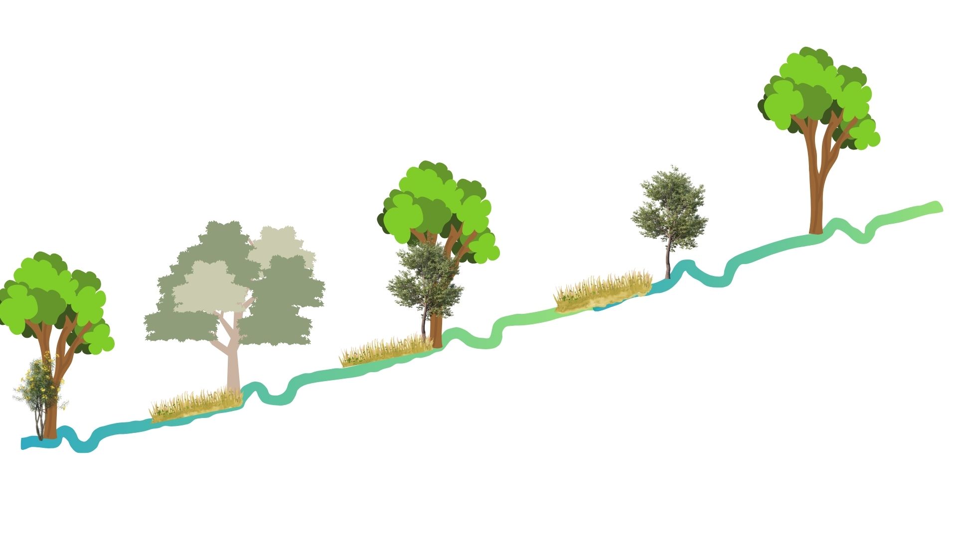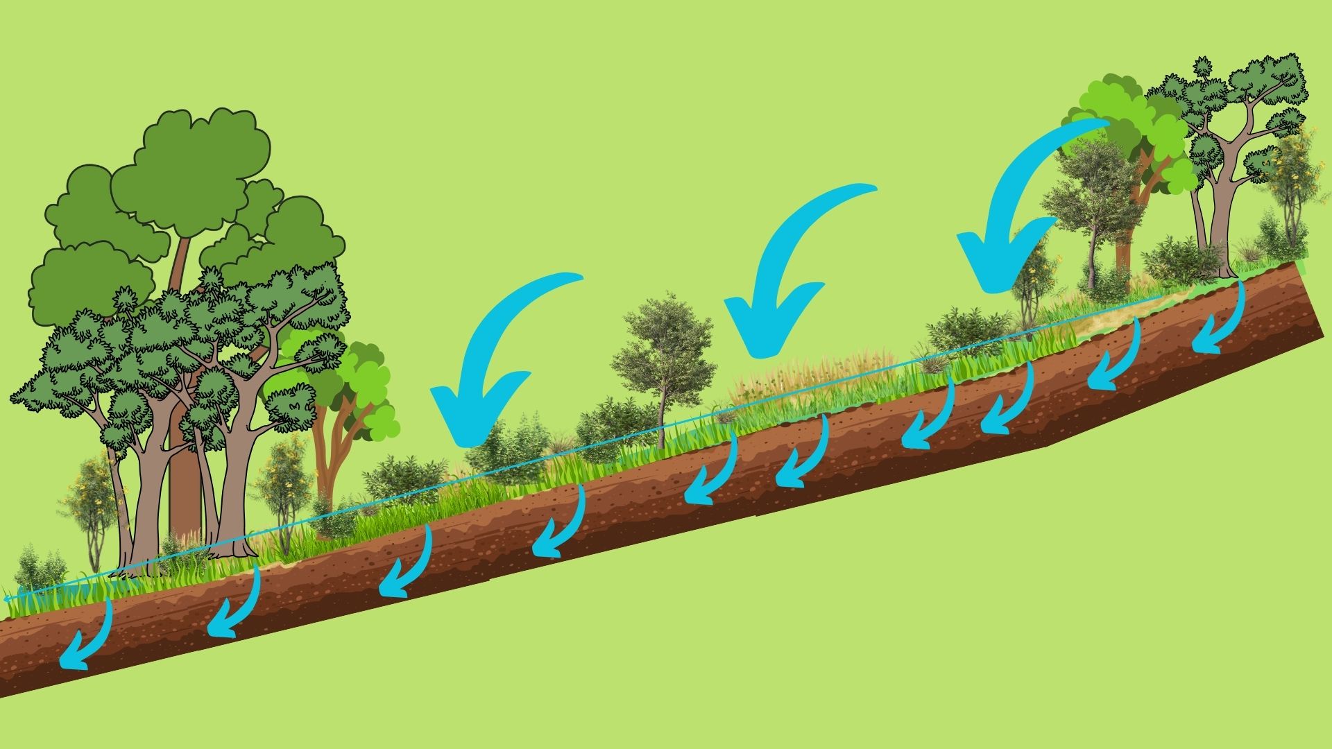 The aim of the swale design is to encourage ground cover, increase water infiltration and allow trees to grow.
