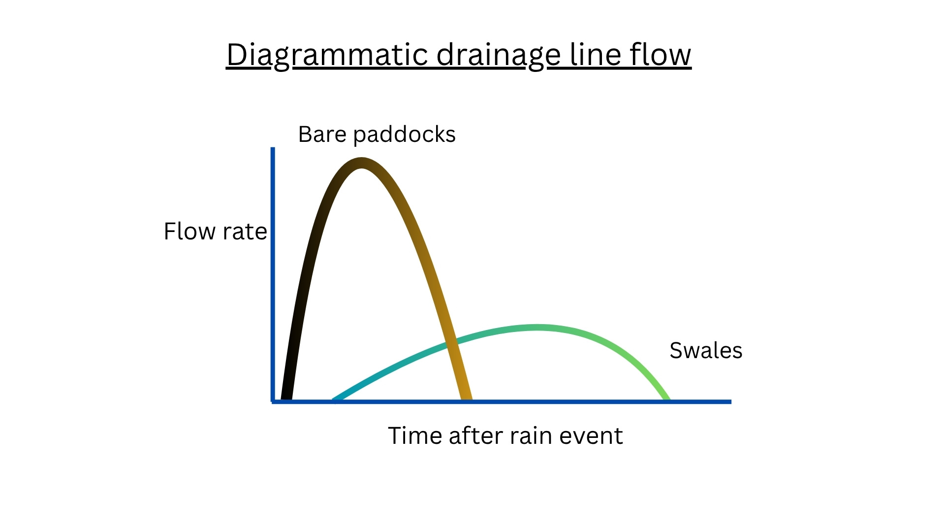 The runnoff would have been slow to peak and extended for quite some time as it flowed through the grass tussocks and tree roots and then into the drainage lines. This tends to create more semi-permanent flow patterns and subsequent watering points for native animals. Down the drainage line would have been a series of ponds.